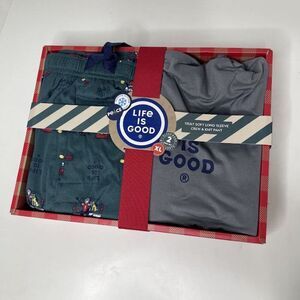 Life Is Good Mens Pajama Set XL Truly Soft Long Sleeve Crew Knit Pant Christmas