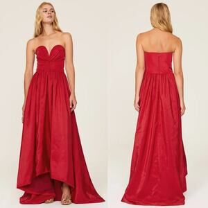 ML Monique Lhuillier Dress Strapless Taffeta High-Low Hem Long Gown Red 0
