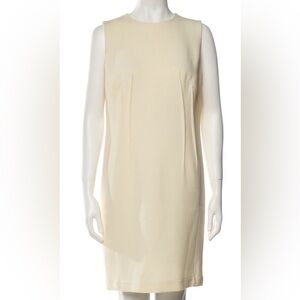 $1,990 Akris Cream/Ivory Pintucked Double Face Wool Crepe Sheath Dress Size US10