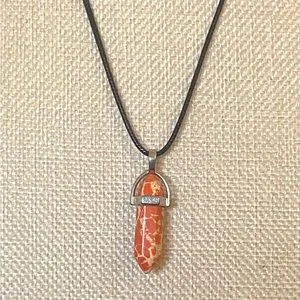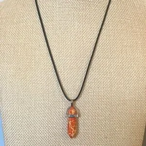 Hand Crafted Breciated Jasper Leather Coated Necklace