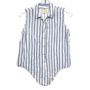 Japna Button Sleeveless Tie Front Top S Blue White Striped Viscose Coastal Boho