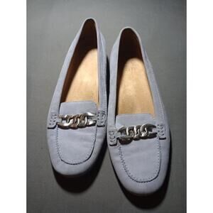 The Naturalizer Women's Size 10 shoes are a comfortable and stylish addition to any wardrobe. Featuring a flat design, leather upper material, and a beautiful blue color, these shoes are perfect for everyday wear. The nature-themed style adds a touch of elegance and sophistication, making them a versatile option for any occasion. Whether you're running errands or dressing up, these Naturalizer shoes are sure to make a statement.