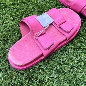 Stylish pink sandals with adjustable straps. Comfortable footbed. Perfect for casual wear.