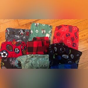 Lot includes : pair of swim trunks, 2 pairs of shorts, 1 pajama set, & 12 pairs of pajama pants. Size range from 8-10 youth