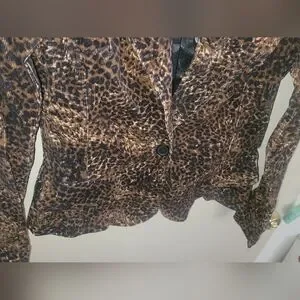 No Boundaries Vintage Y2K Curduroy Cheetah Print Blazer NWT 2005 Size L! This blazer is gorgeous and definitely gives off major y2k vibes! It is a plush cheetah curduroy fabric, with a one button closure, a collar, and original tags. It is listed as a juniors size large but would best fit a women's size small or medium. It has been in storage, and is great vintage condition besides blue markings on the inside of the blazer (pictured) they may be able to be washed out I didn't try because of the tags.