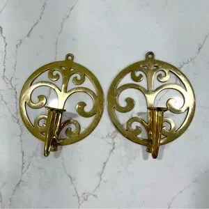 Bring warm cottagecore charm to your home with this pair of vintage brass wall candle sconces. Their whimsical scrollwork design and golden glow make them perfect for creating a cozy, romantic atmosphere.
