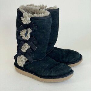 Koolaburra UGG Women Victoria Tall Soft Suede Fur Snow Boots Black Sz 7 1015875