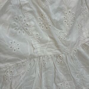 Charming white top with floral eyelet details. Perfect for summer outings.