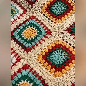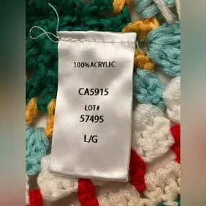 Vibrant crochet design. Sleeveless with a V-neck. Perfect for summer outings.
