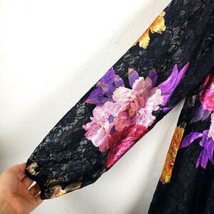 Womens Anthropologie The Odells Maya Black Lace Foil Flower Floral Mini Dress Sm