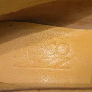 some wear on the exterior bottom of the shoe, some spots of discoloration and small tear as shown