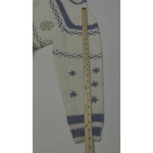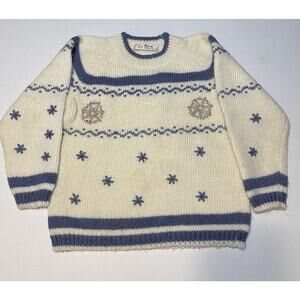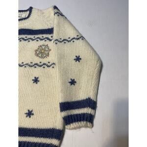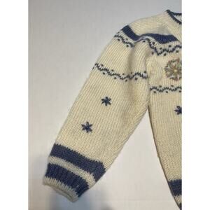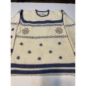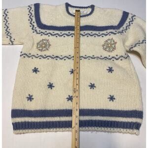 VTG RI GANG Wool Sweater M/L Hand Knit Embroidered Snowflake Stars Nordic Design
