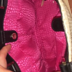 The Kate Spade Leather Trimmed Tote Handbag is a stylish and spacious accessory for women. Made with natural raffia exterior and black leather trim, this tote features a colorful pink lining. The combination of the materials and the classic tote style make it a versatile option for everyday use or special occasions. The black handle/strap adds a chic touch to this fashionable handbag from Kate Spade New York.