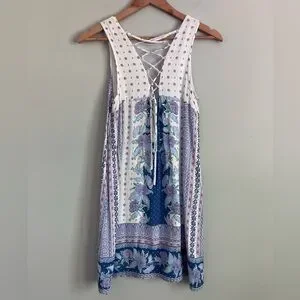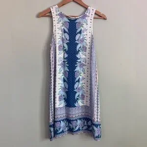 AEROPASTLE White and Blue Floral Shift Dress Size S (Like XS-S)