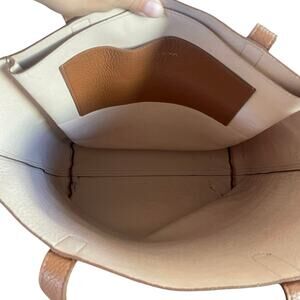 Cuyana Classic Tall Pebbled Leather Tan Tote. Over the shoulder style. Large size with divider pockets to keeps everything organized.