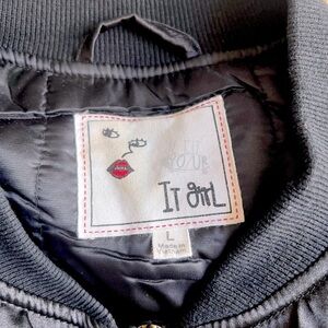 “It Girl” Black Sateen Bomber Jacket