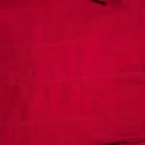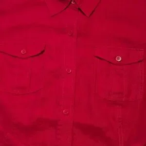"red button down shirt"