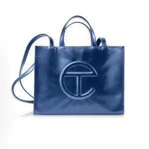 Stylish Telfar tote in colbalt blue. Iconic logo design. Perfect for versatile use.