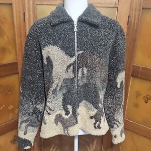 Vintage Cozy cardigan jacket with equestrian motif. Soft and warm. Perfect for layering.