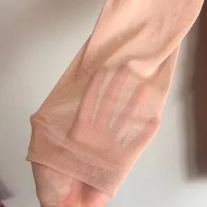 • Features a delicate sheer mesh overlay in a blush/light beige color.