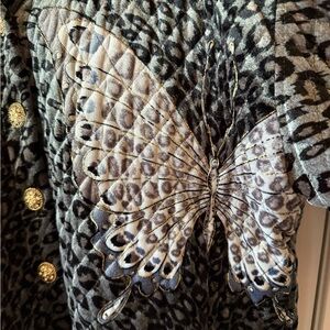Elevate your wardrobe with this chic gray leopard print, quilted jacket with butterflies 🦋! Perfect coat for adding a touch of elegance to jeans and a tee. Size Medium, Excellent Condition, from a non-smoking home.