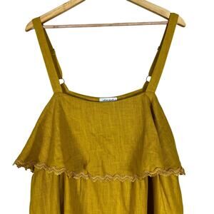 White Birch Sleeveless Blouse Womens 1X Yellow Tiered Lace Cottagecore Prairie