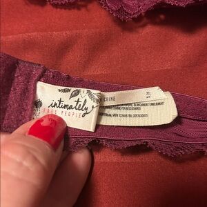 Chic lace bralette duo. Features burgundy and cream colors. Stylish and comfortable. One is halter size and the other is t-back. Great condition!