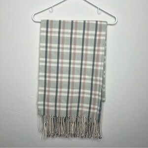 Banana Republic Factory women’s plaid scarf. Grey white and blush pink. The brand tag is missing but I think it’s from Banana Republic Factory