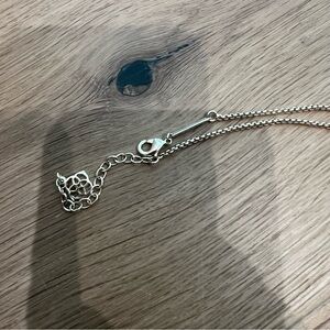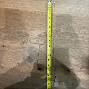 This elegant pendant necklace features a stunning pale pink stone set in a sleek frame. In excellent condition.