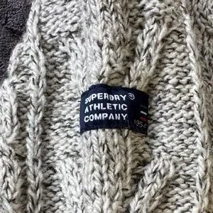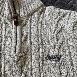 Superdry Beige Cable Knit Men's Zip Sweater Size Large