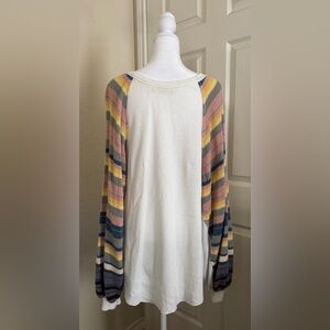 Free People We The Free White Shirt with Multicolor Striped Sleeves Women’s M