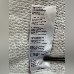 White is the primary color with shades of yellow, gray, slate blue, dark purple, and black on the sleeves.