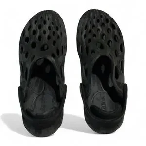 Casual black slip-on water shoes with a unique perforated design. Also perfect for casual wear.