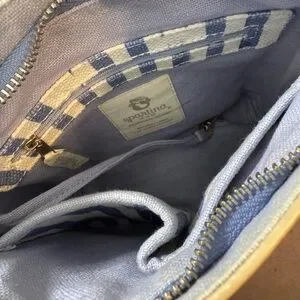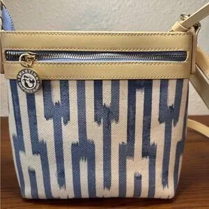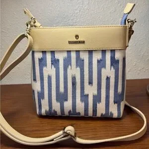 Spartina 449 Tan and Blue Patterned Crossbody Bag Purse NEW