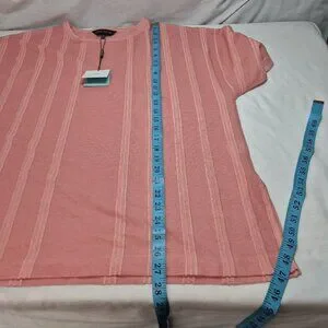 The Ming Wang Women's Size S Dolman Sleeve Knit Tunic in Orange Burst Tonal Stripes is a stylish and versatile top perfect for various occasions. This tunic features a crew neck, pullover closure, and side slits for added flair. Made with a lightweight knit fabric, it is ideal for summer and spring seasons. The relaxed fit and dolman sleeve design make it comfortable and fashionable, while the tonal stripes add a touch of sophistication. Perfect for travel, parties, casual outings, workwear, or business events, this tunic is a must-have for any designer-conscious woman's wardrobe.