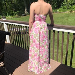Stunning dress pink and green size small. This is just gorgeous gown. Back zipper, true to size, by BHLDN. Absolutely beautiful.