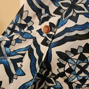 JM Collection 2X Myra Medallion 3/4 Sleeve Top Artisan Blue Combo EUC