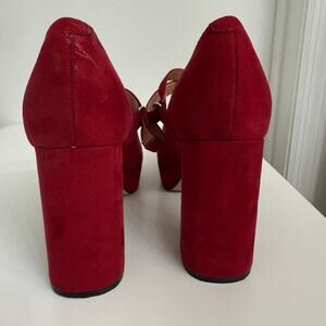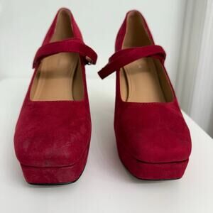 Marc Fisher Mary Jane Pumps Red Cherry Suede Bold Statement Pinup Sz 7.5