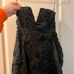 This stunning black evening gown is perfect for any formal occasion. Its elegant design and intricate detailing make it a standout piece in any wardrobe.