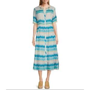 John Mark Midi Dress XL Chevron V-Neck Elbow Sleeve Button Front NEW