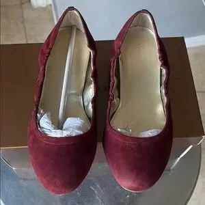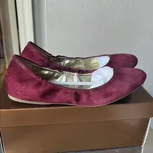 Elegant burgundy flats. Soft suede material. Comfortable and stylish.