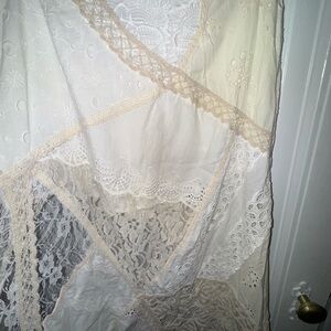 NWOT - Urban Outfitters (Kimchi Blue) Cream Lace Skirt Chic cream lace maxi skirt, size M. Features intricate lace patterns, so gorgeous. Would keep, but too small/short on me. Lined as a mini, but lace is asymmetrical as a midi. Truly so unique and pretty🤍
