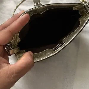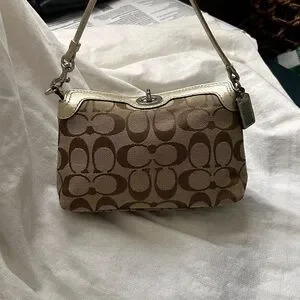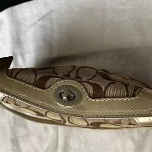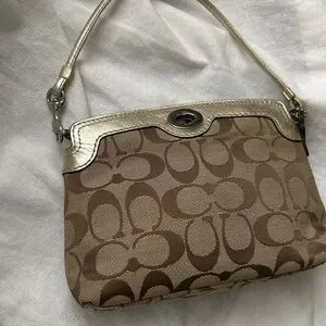 Coach jacquard Tan and Gold Signature wristlet mini bag purse