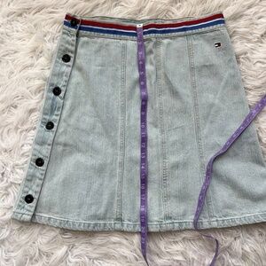 Tommy Hilfiger Light Denim Button Up Skirt Colorful Band Early 2000s size 6