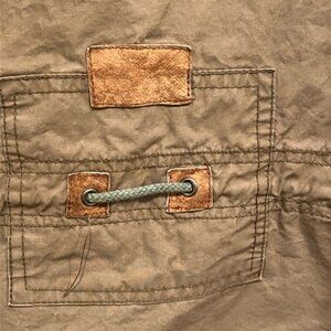 Vintage Mens Brown Utility Field Jacket With Suede Accents & Gold Button Details