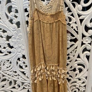 Discover elegance with this chic crochet lace maxi dress. Its intricate design and flowing silhouette make it perfect for any occasion. Embrace style and comfort in tan.