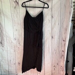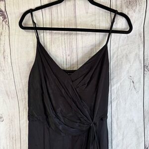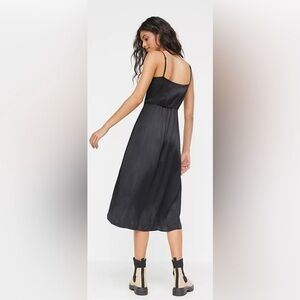 Anthropologie Giverny Midi Slip Satin Elegant Black Wrap Dress 12