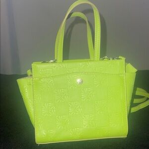 Bright lime crossbody bag with embossed design. Sleek and stylish for any outfit.