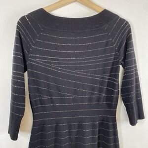 White House Black Market Women's Knit Sweater Dress Small Metallic Stripe