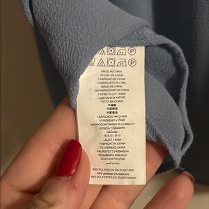 Elegant sky blue blouse with V-neck. Short sleeves and gathered accents. Unlined. Love the gather details. 36 inch bust.